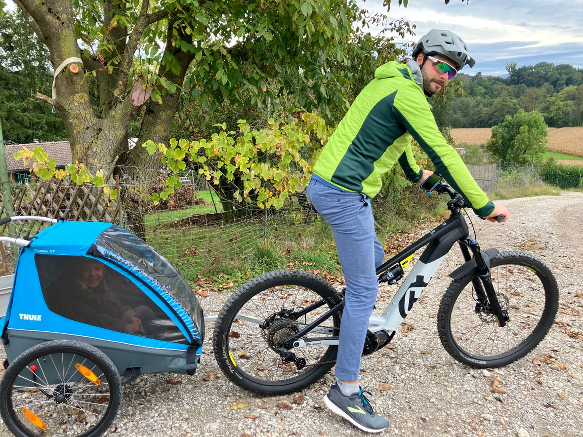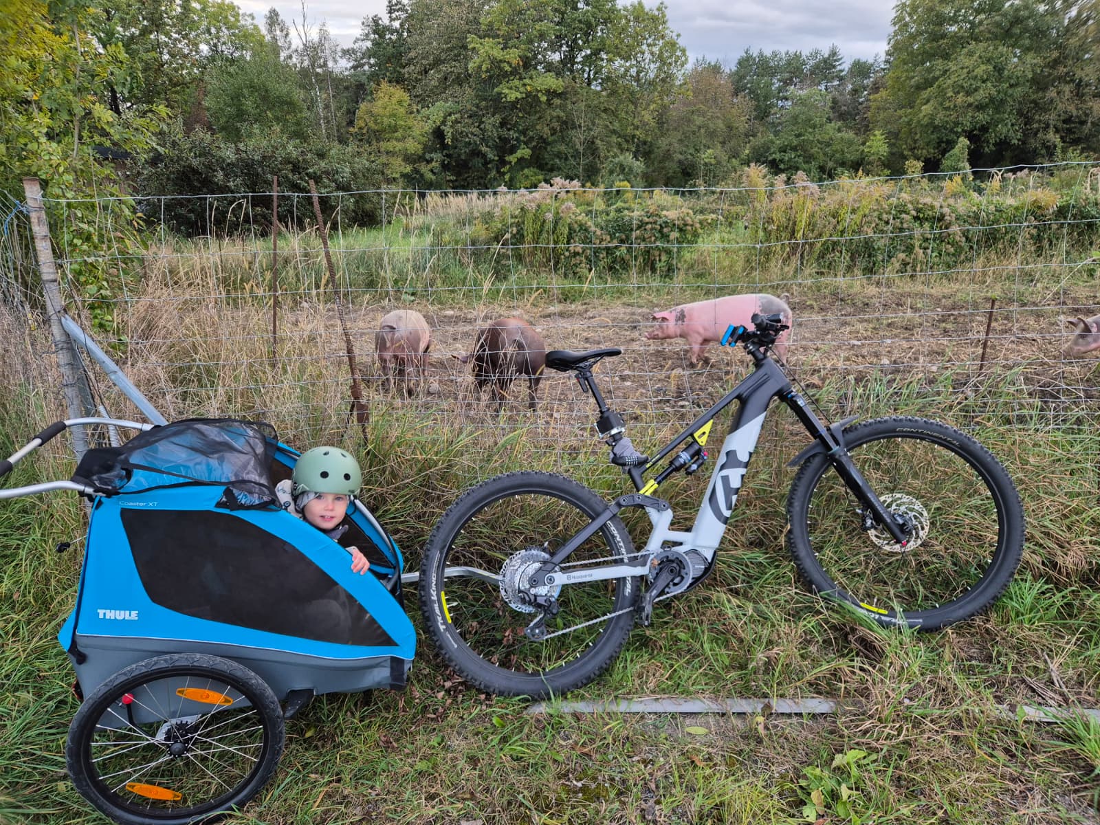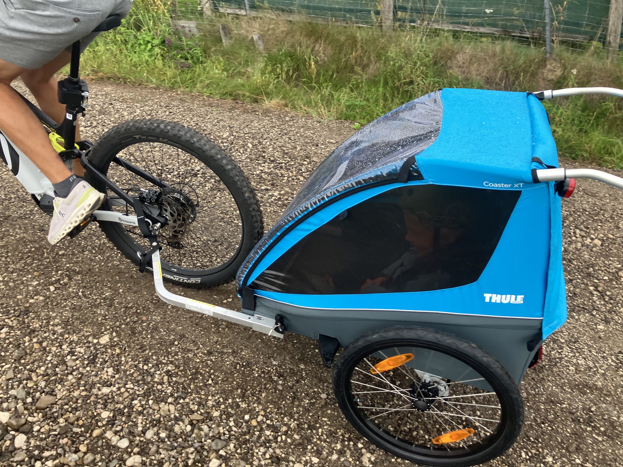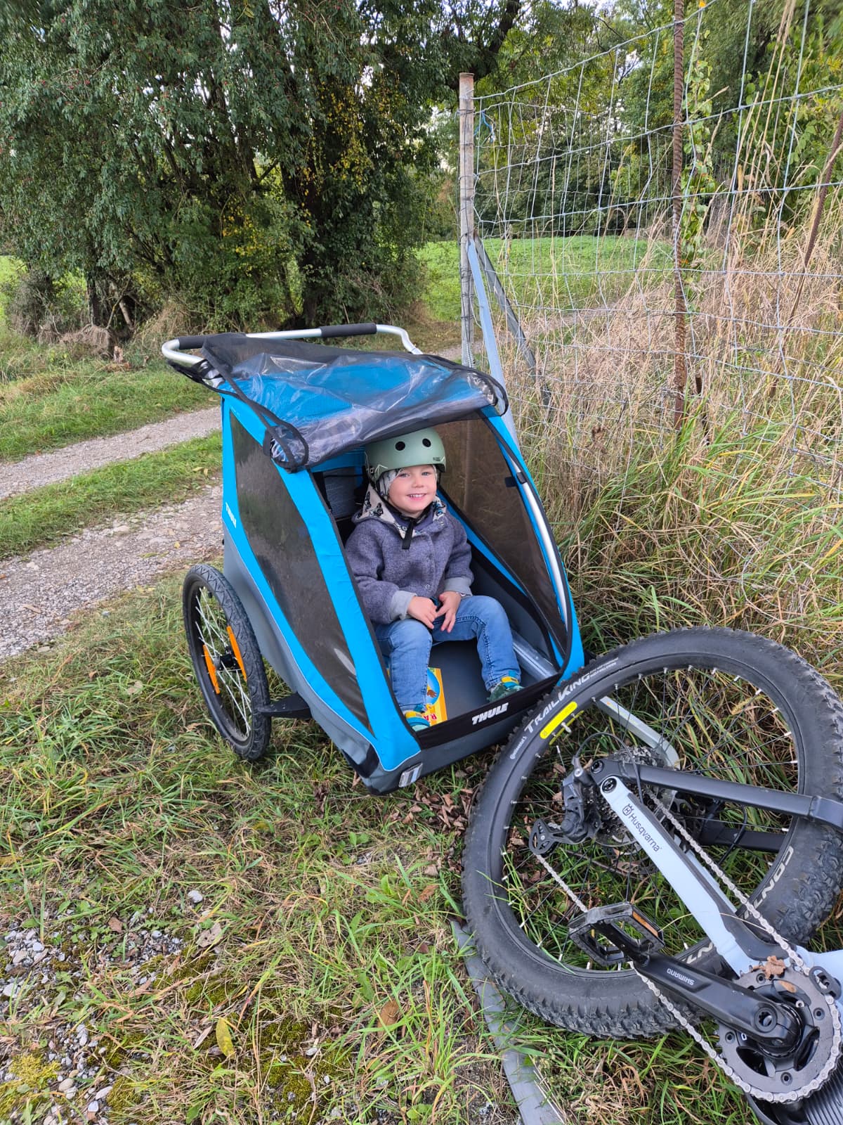 Die Kinder waren am Schluss etwas müde, also wechselte der Große für die letzten Kilometer ebenfalls in den Thule-Anhänger – ein klarer Vorteil, wenn man flexibel bleiben möchte.