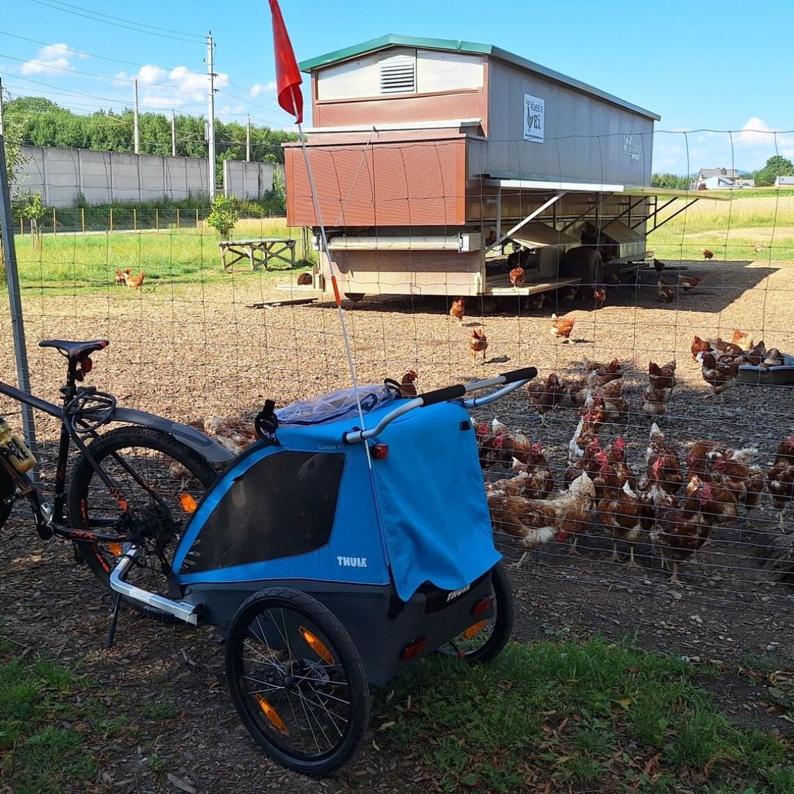 Die kleine Mira liebt den Kinderradanhänger der Aktion…